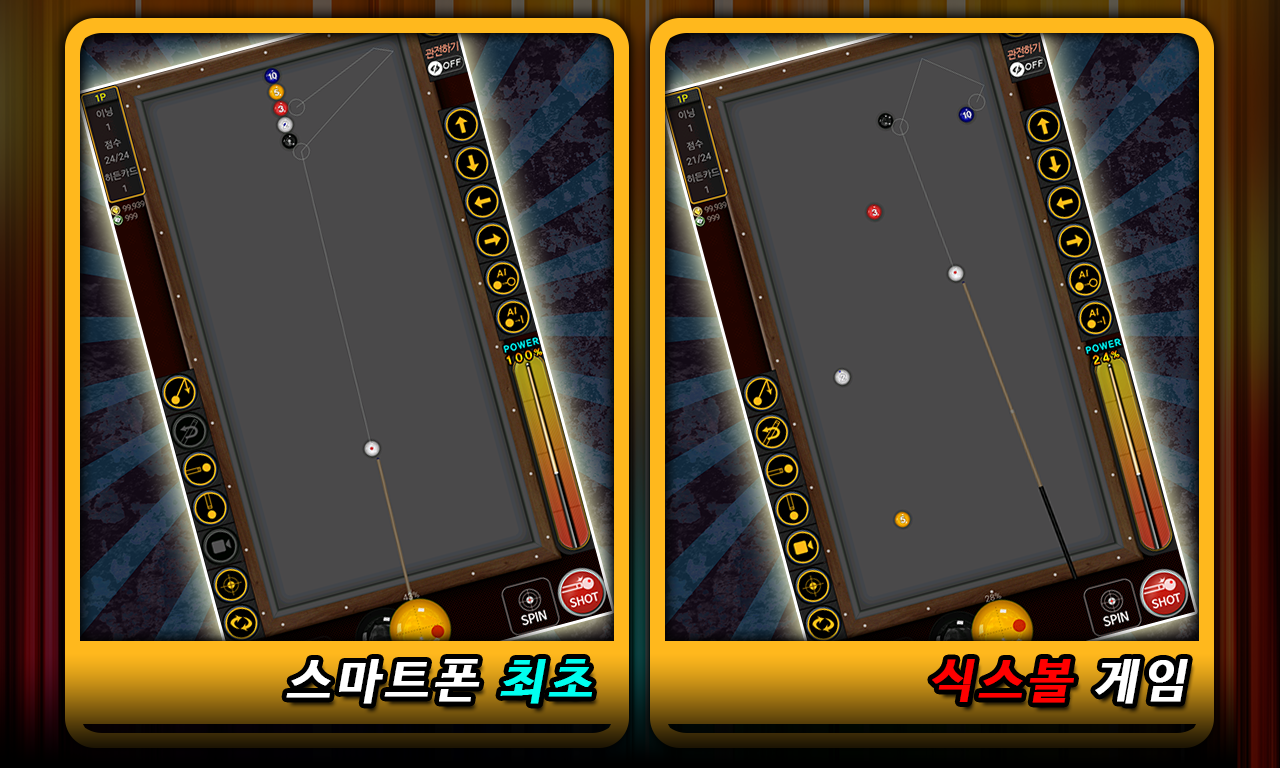 리얼당구는 어플 이름처럼 실제 당구와 거의(99%) 흡사하게 만들었습니다.