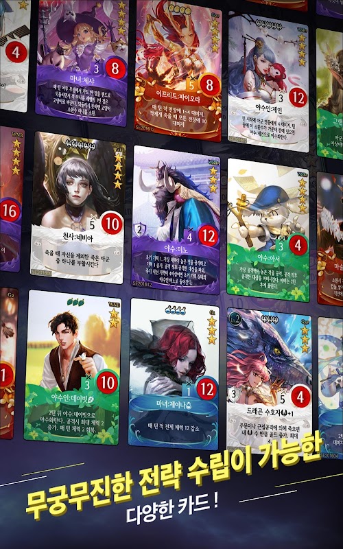 1,000종 이상의 카드와 여러 개의 상성을 조합하여 무한대의 덱을 생성 가능합니다.