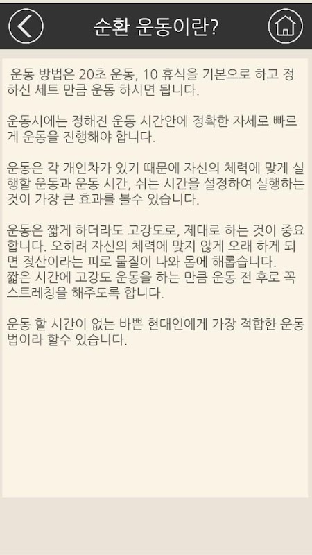 기구 없이 집에서도 쉽게 따라할수 있는 매일 순환 운동 어플로 모두 몸짱 되세요.