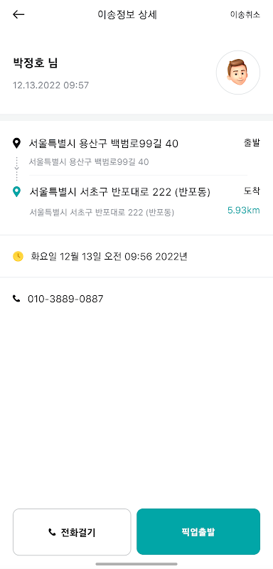 Sdaa 는 예약자 에게 픽업 출발 시간 전송 및 이송 과정 에 대한 정보 를 앱 을 통해 전달 하고, 이송 완료 처리 기능 이 있어 이송 완료 됨과 동시 에 예약자 이송 완료 완료 메시지 가 보내지며 새로운 배차 됨과 가능 예약자 에게 이송 완료 메시지 가 보내지며 새로운 배차 가 가능 해집니다. 차주분들이 이송 업무에만 집중할 수 있도록 SDAA가 도와드리겠습니다.