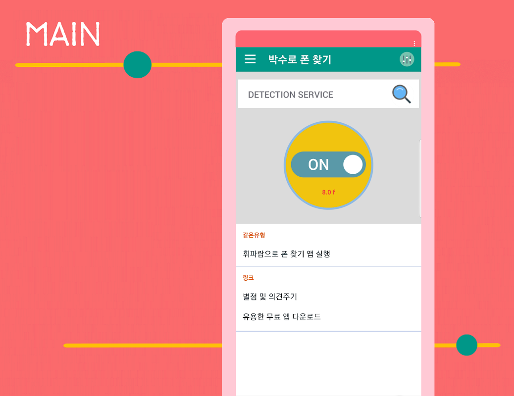 가볍고 최적을 기능과 세련된 인터페이스를 자랑하는 박수로 폰 찾기 앱 입니다.