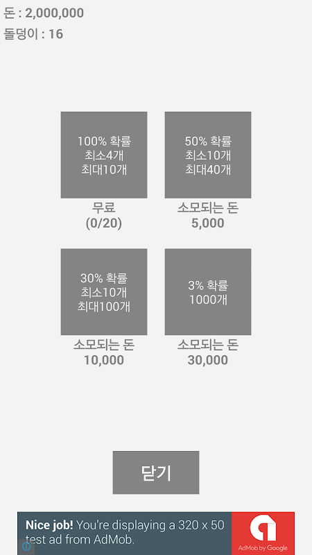 돌덩이를 구하고 판매한 돈으로 무기를 강화하자!