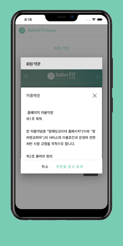 Application de réservation pour la classe Ballet Fit Korea