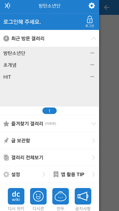2. 연관 디시콘 : 방탄소년단 갤러리와 관련있는 디시콘을 갤러리 정보 화면에서 확인할 수 있습니다.