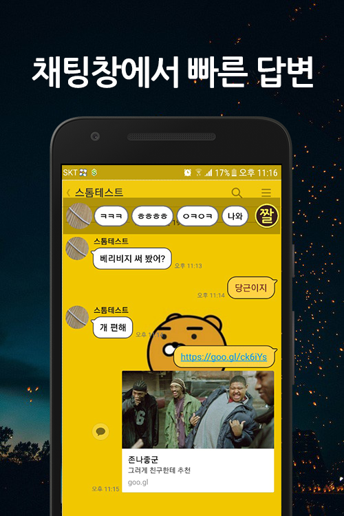 친구과 카톡 대화중 짤 이미지를 쉽게 보낼수 있습니다.