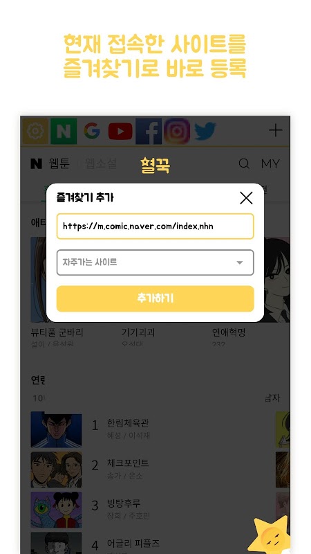여러분들이 자주 가는사이트를 즐겨찾기로 추가하여 클릭 한번으로 편하게 사이트 이동이 가능합니다.
