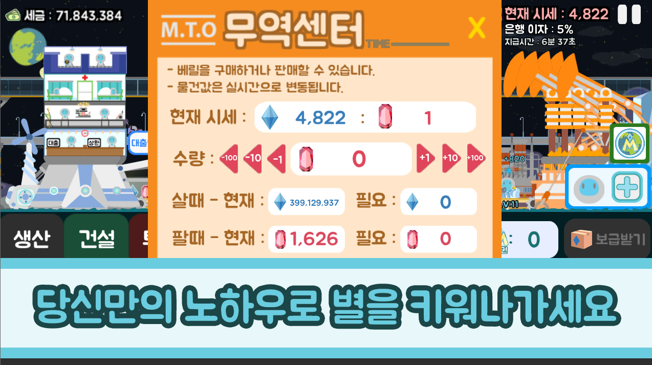 여러가지 방법으로 돈을 모아서 별을 발전 시켜보세요.