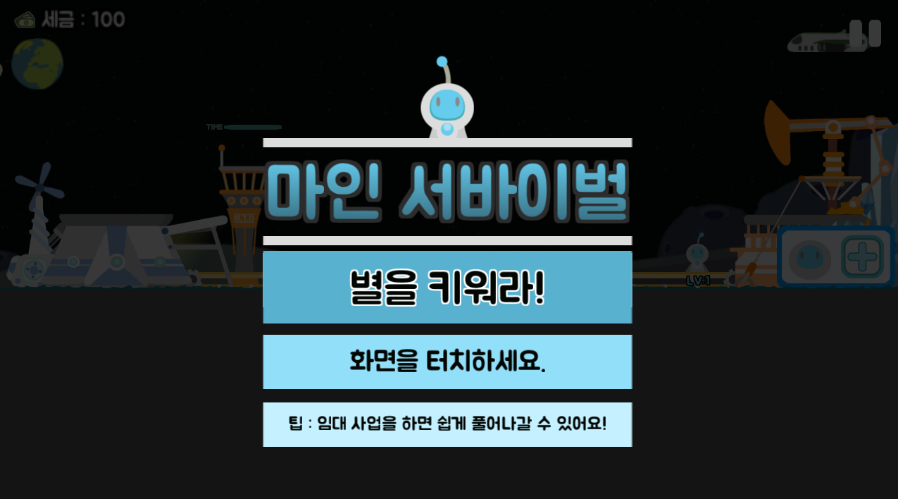 마인 서바이벌은 어떤 별에 도착한 인류의 사령관이 되어, 별을 발전시켜 나가는 게임입니다.