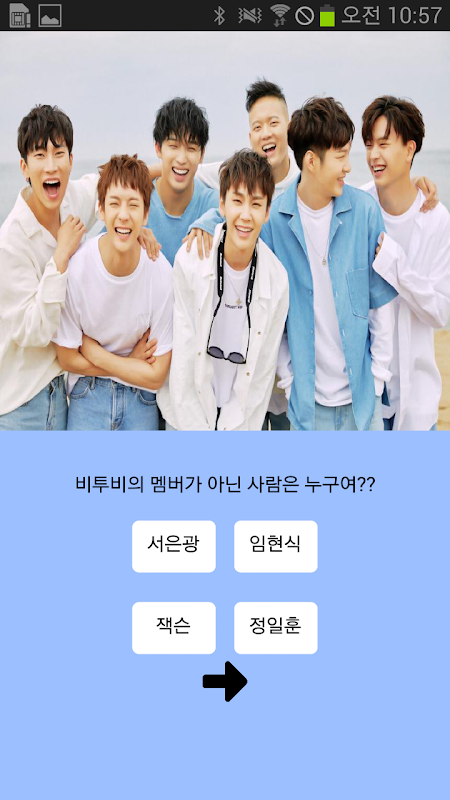 비투비에 대한 문제를 보고 4개의 보기 중 답을 선택한다.