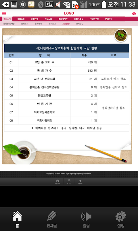 총회장 인사말 / 총회소개 / 총회연혁 / 총회로고 / 교단현황 / 오시는길