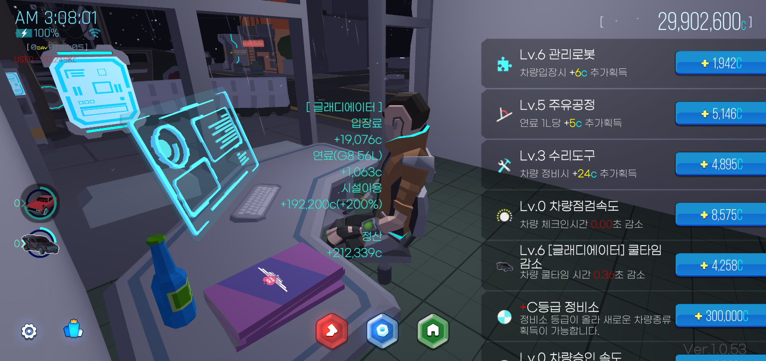 - 정비등급을 올려 더 높은 등급의 차량을 유치해보세요
