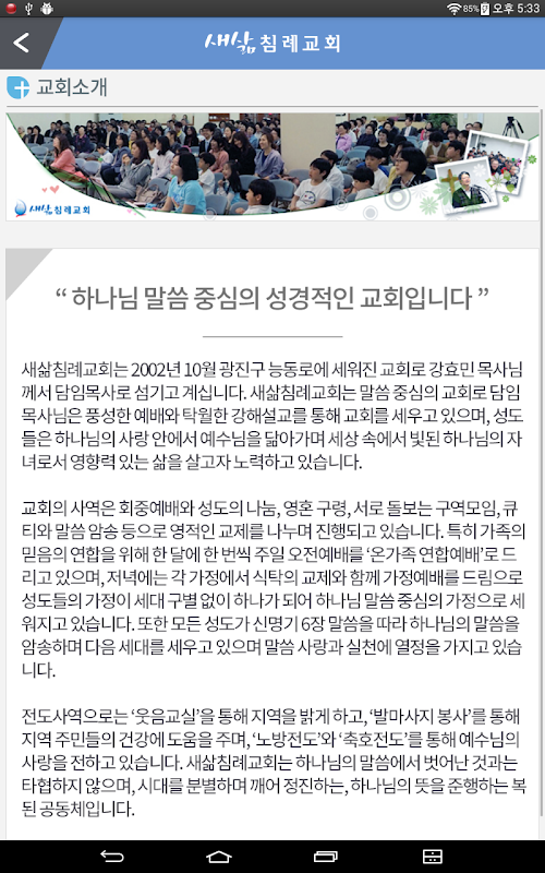 “하나님 말씀 중심의 성경적인 교회입니다.