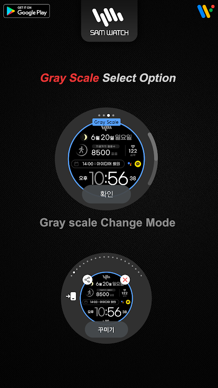 * L'application pour smartphone est une application supplémentaire dans l'application Watchface qui explique le guide de téléchargement. Il peut être différent de la capture d'écran du cadran de l'application pour smartphone et de la capture d'écran du cadran réellement téléchargée. La plupart des produits d'application Watchface de SamWatch incluent des applications pour smartphones.