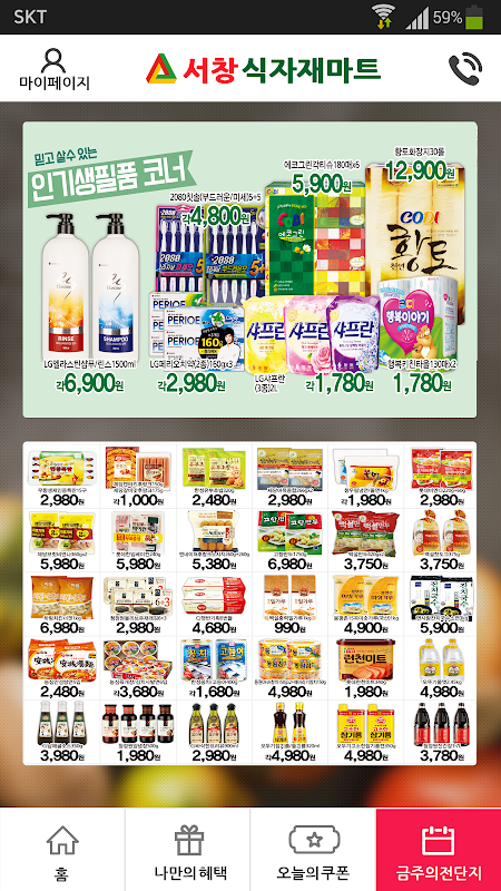 매일매일 할인에 기간별 할인까지 서창식자재마트의 세일정보를 확인하세요.