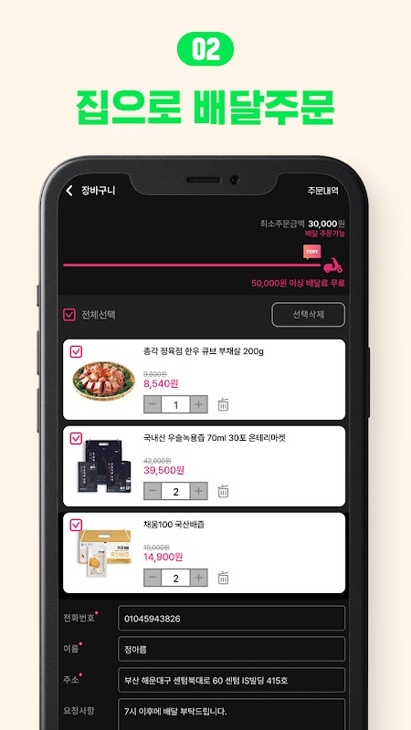Au lieu de chariots lourds, nous achetons confortablement à la maison et livrons à votre porte le jour même.