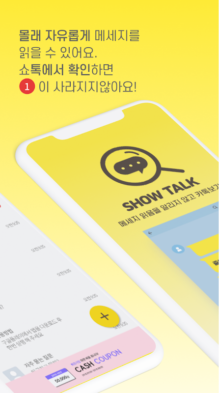 Que faire si vous souhaitez consulter vos messages sans que l'autre personne le sache ? Vérifiez à tout moment avec ShowTalk. Fournit la fonction de prévisualisation KakaoTalk.