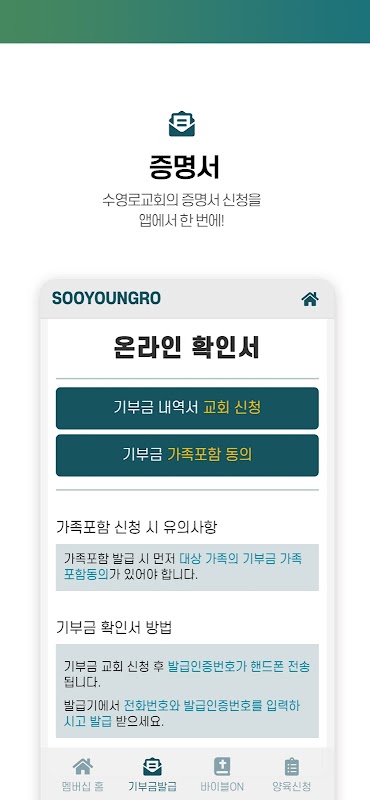Il certifie les membres de l'église de Suyeongro et est utilisé pour l'accès et la délivrance de divers certificats.