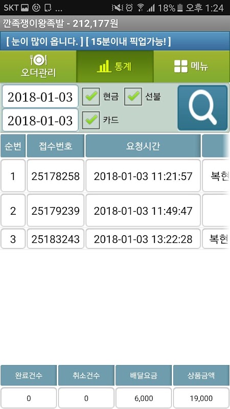 앱을 통하여 주문을 받은 배달대행 기사가 주문의 정보와 함께