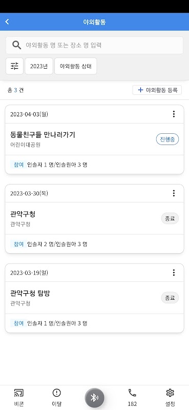 ▷어린이집의 야외 체험 활동시 일어날 수 있는 실종사건을 예방하기 위해 제공되는 서비스 입니다.