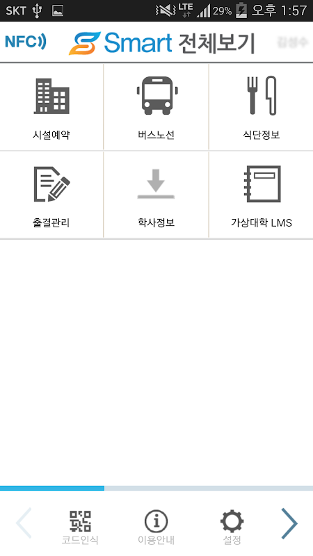 스마트 세한 앱은 NFC 태그와 QR 코드를 활용하여 세한대학교 구성원들을 대상으로 다양한 서비스를 제공합니다.