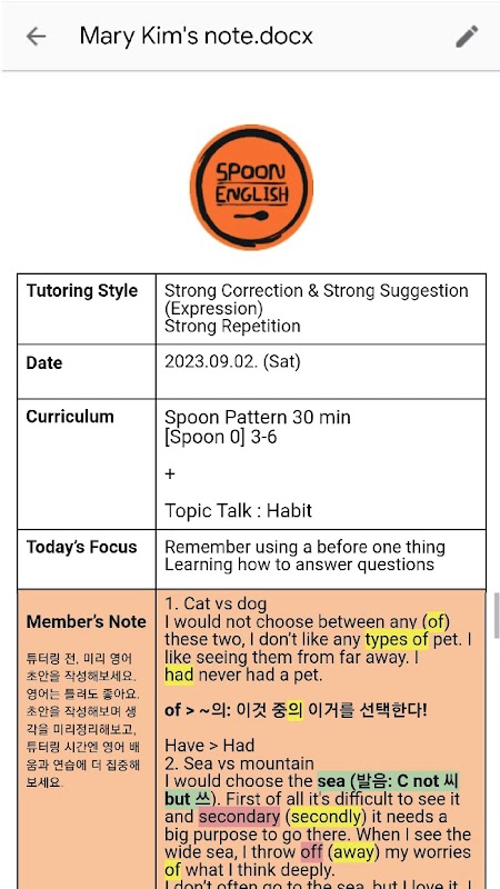 스푼잉글리쉬 회원과 멤버를 위한 일대일 영어회화 튜터링 관리앱. 편리한 스케쥴링, 수업자료와 노트를 쉽게 확인하고 관리할 수 있습니다.