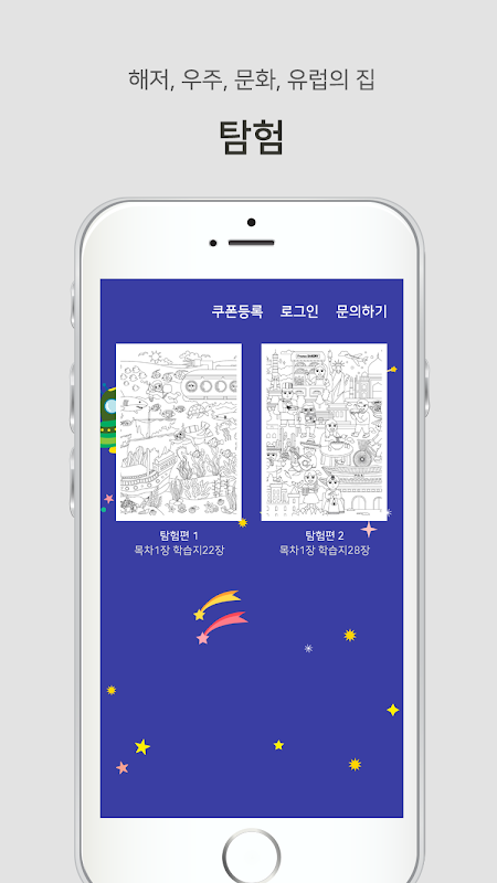 시멘토 색칠공부 포스터 탐험편은 색칠공부 4종 뿐만 아니라, 아이가 직접 색칠한 그림에 대한 학습이 가능한 스마트 기기 학습지로 구성되어 있습니다. 구매하신 색칠공부 포스터에 포함된 "쿠폰번호"를 입력하시면, 흥미롭고 재미있는 학습지들이 열리면서, 아이와 즐거운 시간을 보낼 수 있습니다.