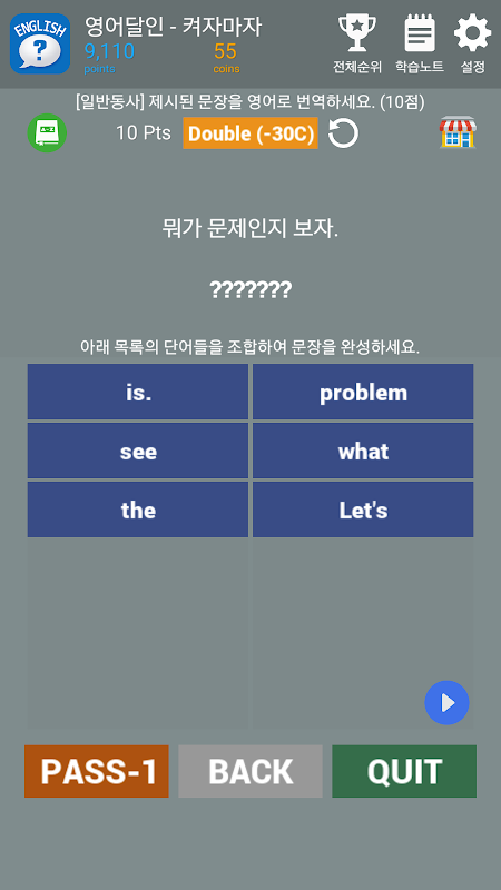 조금은 강제적이지만 영어 퀴즈를 하나씩 풀다보면 나도 모르게 어느새 쭉쭉 늘어나는 영어 실력.