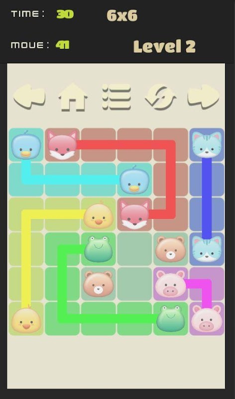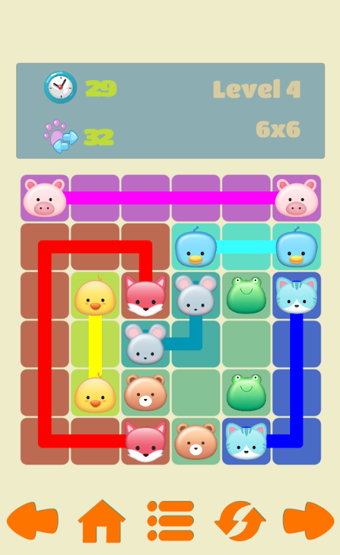 같은 색상을 동물들을 연결 하는 퍼즐게임 입니다.