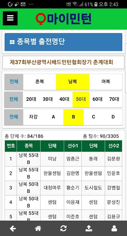 배드민턴 협회(단체) 회원,대진표자동작성 및 온라인 경기진행 프로그램의 최강자