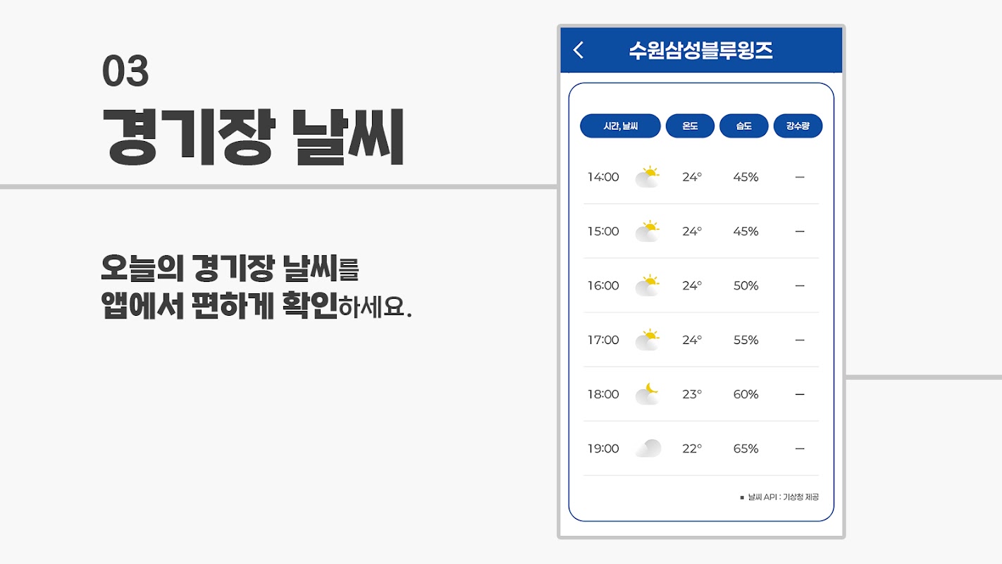 Nous calculons et fournissons les informations météorologiques pour tous les stades de K-League, en fonction des coordonnées.