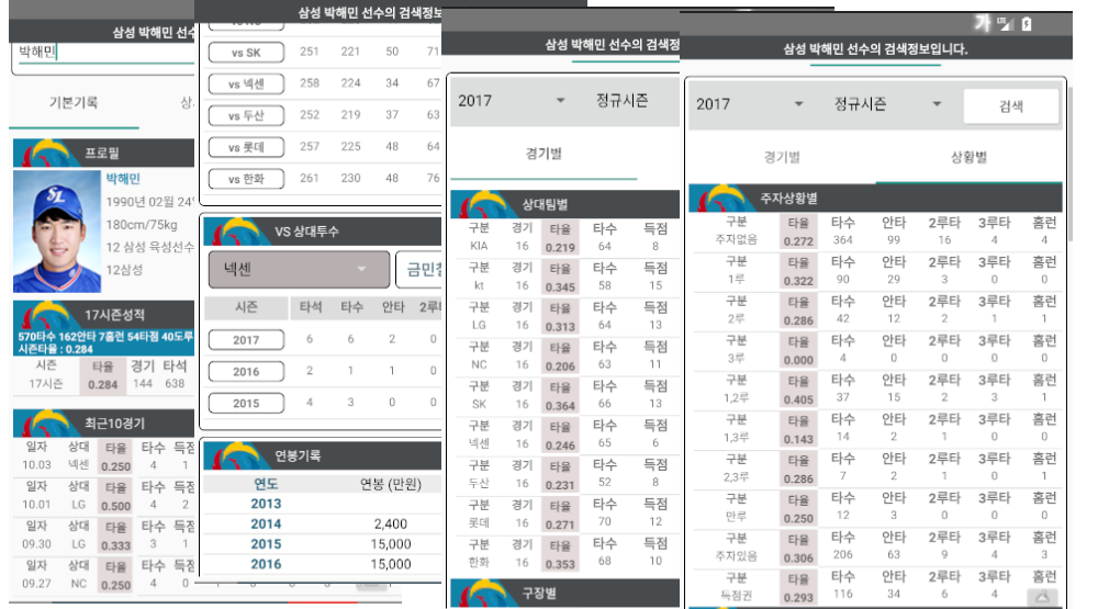 선수 상세검색 지원 ( 통산기록,시즌기록,상대팀별기록 등등 )