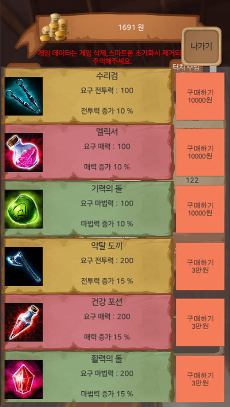 용병의 전투력, 매력, 마법력을 성장시켜주세요.