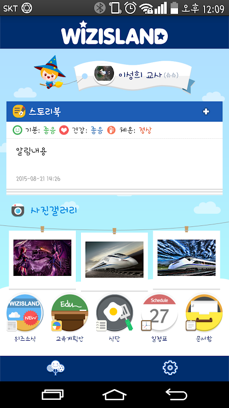 위즈아일랜드 가맹점별로 원장 , 교사 , 학부모가 사용하는 위즈아일랜드 가맹원 전용 어플리케이션입니다