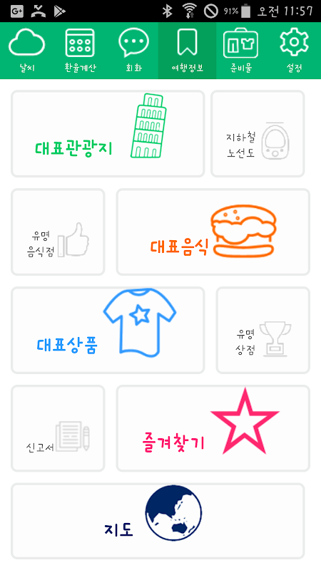 여행정보, 여행회화, 지하철노선도는 기본이고,