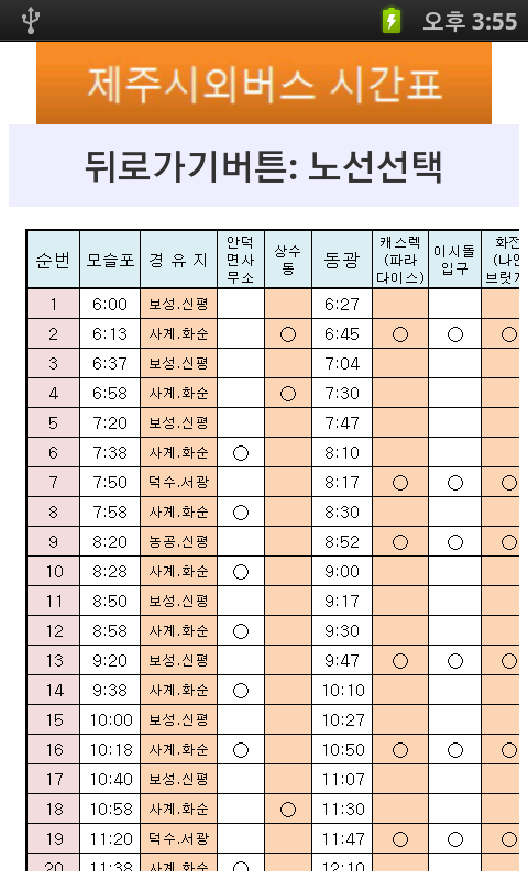 Utile pour les habitants et les touristes, le calendrier Jeju Bus. Jeju autobus interurbain horaire de service qui montre