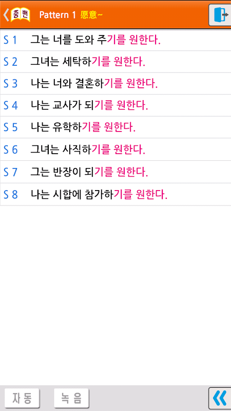 1단계 : 우리말과 중국어로 표현된 패턴의 반복 학습을 통해 패턴과 친숙하게 됩니다.