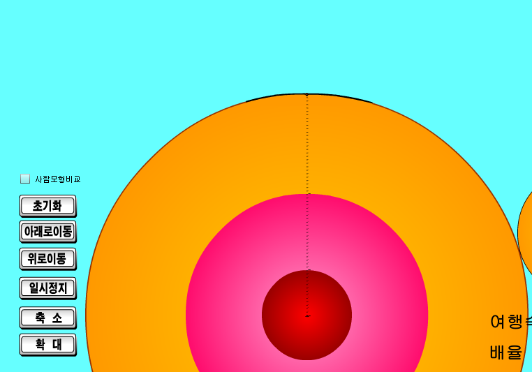 지구내부구조 지각,맨틀,외핵,내핵의 크기를 비교 관찰하는 가상실험 프로그램입니다.