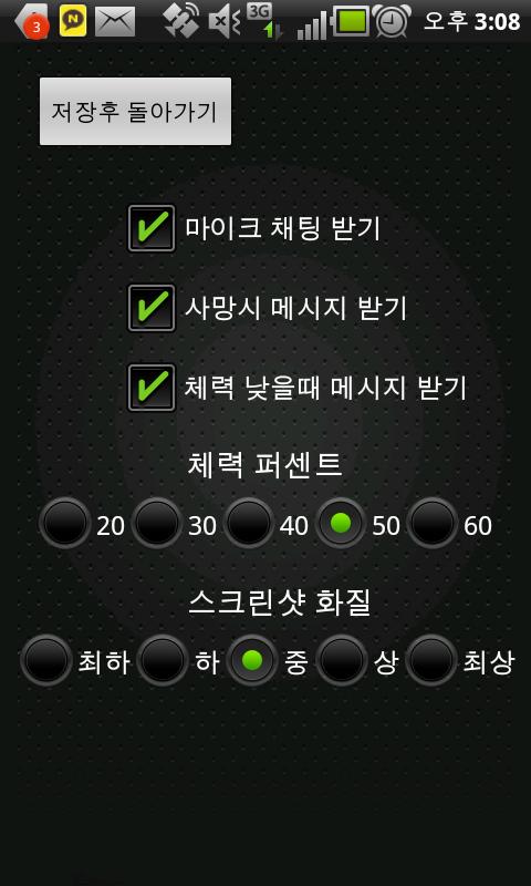 - 프로요와 진저브레드를 사용하는 스마트폰에서 사망이나 체력 낮음 메시지를 받는 과정에서 강제종료되는 버그가 수정되었습니다.