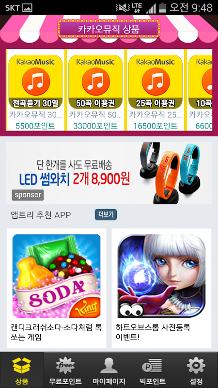 5곡부터 한달 스트리밍 무료까지 다양한 상품으로 교환이 가능하며