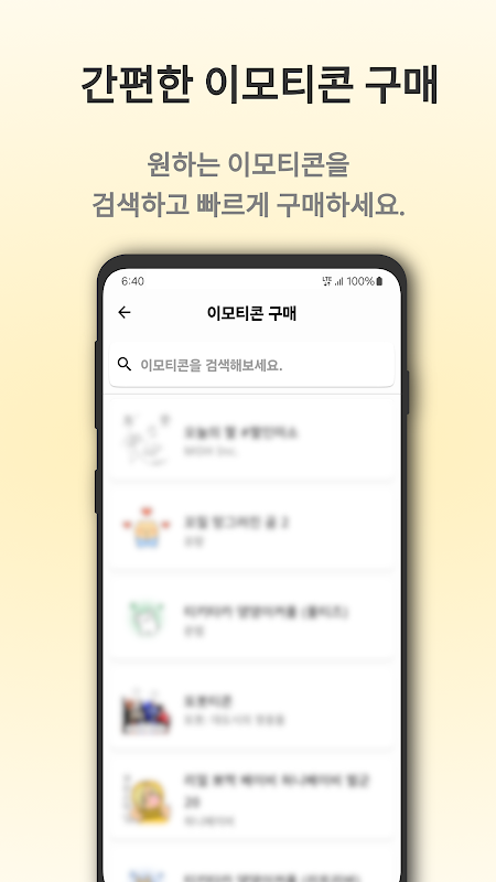 Utilisez votre argent gagné pour acheter une variété d'émoticônes populaires de KakaoTalk. Choisissez votre émoticône préférée et recevez-la immédiatement avec un simple processus d'achat.