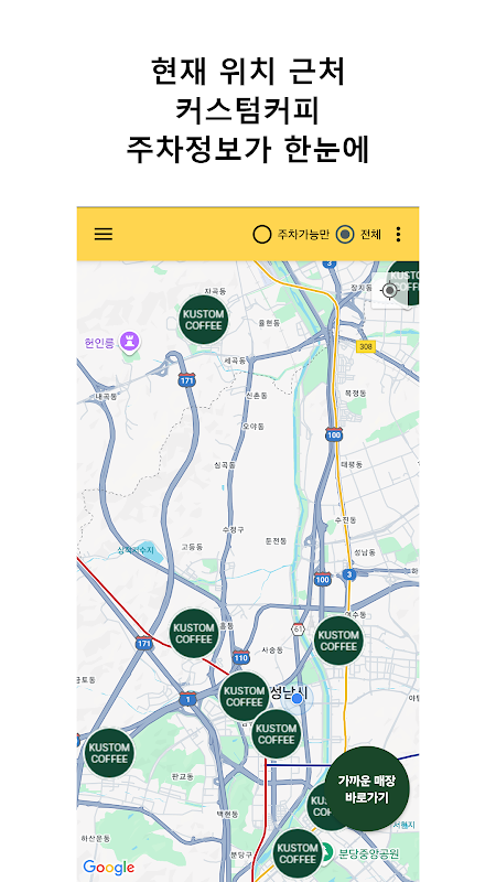 Informations de stationnement et conseils Tmap pour les magasins KustomCoffee en un seul clic ~