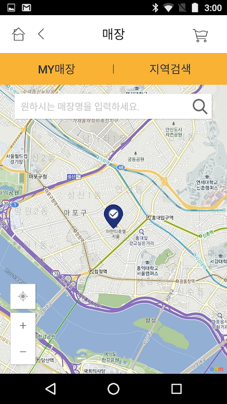 내 위치 가까이에 있는 매장을 확인하거나 전국 매장 정보를 확인할 수 있습니다.