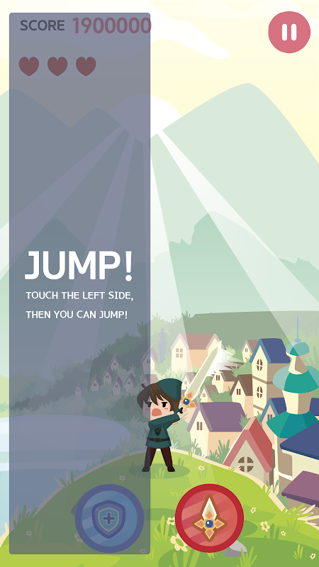 ● 터치스크린 왼쪽을 터치할 시, 캐릭터 점프.