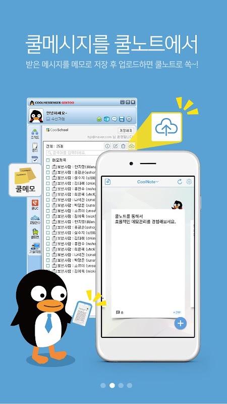 * 메모 목록에서 펭귄 마크는 쿨메신저에서 온 메모에만 표시됩니다.