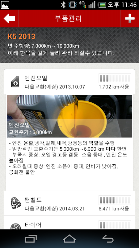 4. 소모품/부품 교체 시기가 자동 안내 됩니다.