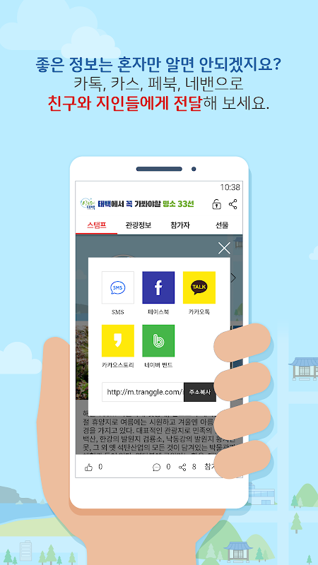 - 카카오톡, 카카오스토리, 페이스북, 네이버 밴드 공유 기능