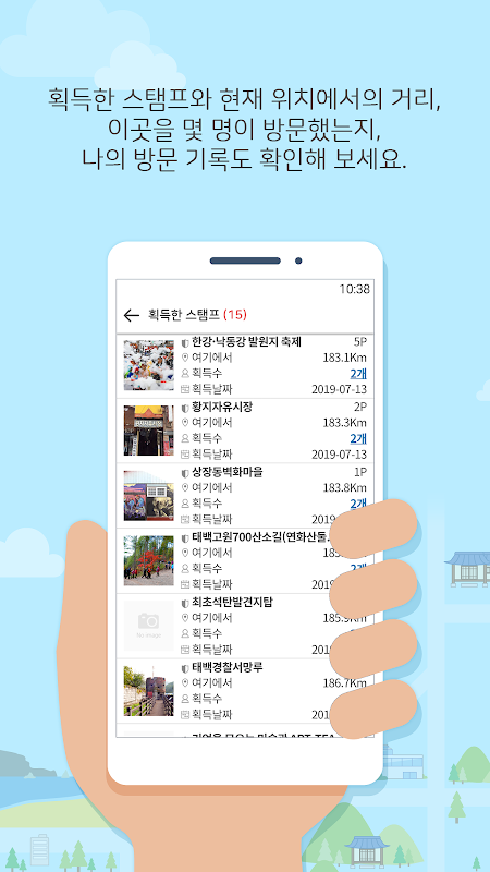 - 획득 한 스탬프 수, 거리, 획득일자 확인