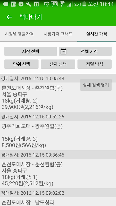 파밍 도매시장(농수산물 실시간 경매 가격 정보) 0.8.4.1