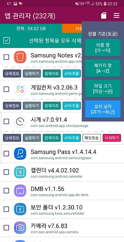 특히 일괄 선택한 앱의 일괄삭제를 지원함으로
