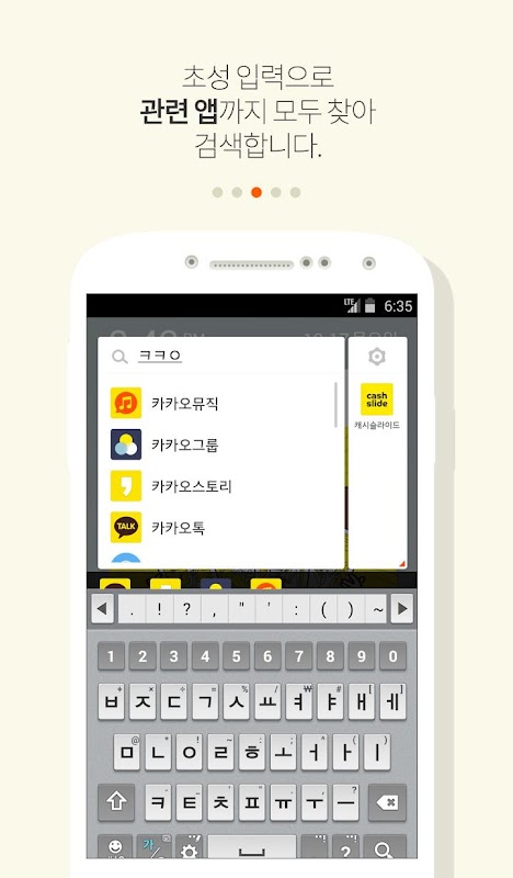 - 초성/키워드를 통해 앱 검색, 웹 검색, 연락처까지 한 번에 검색합니다.